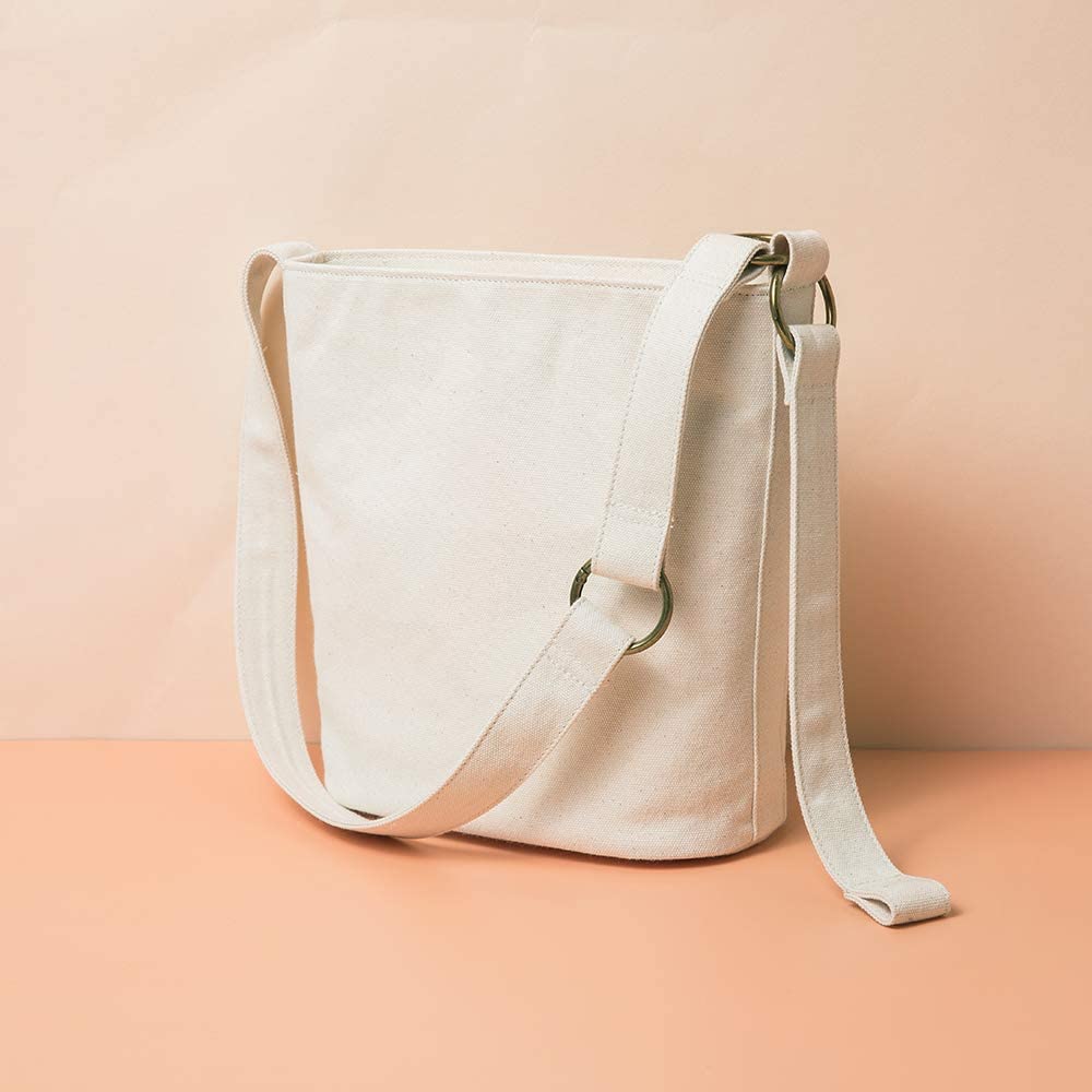 Canvas bag new tide net red personality spring and summer models fashion high-grade sense popular crossbody bucket bag female (Beige)