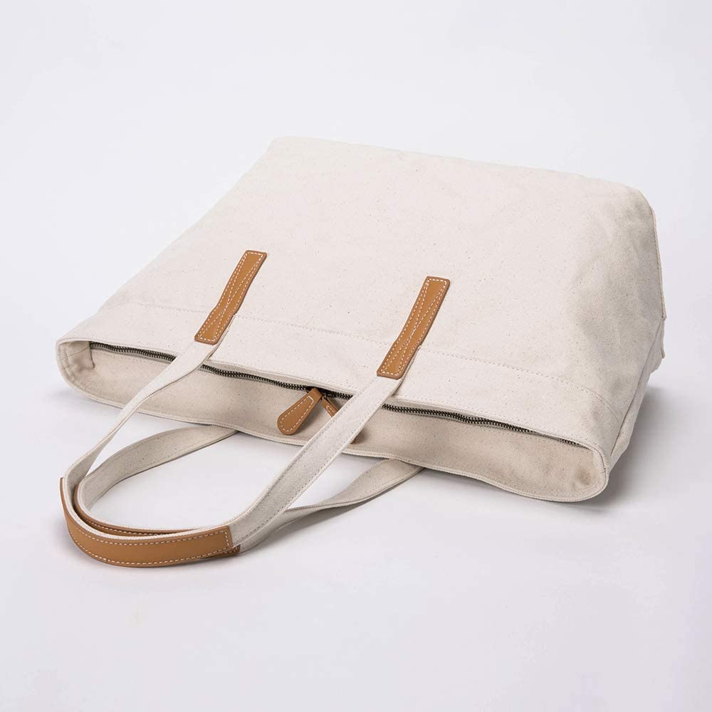 Karitco Korean Design Tote Shoulder Bag Eco Friendly Top Handle Satchel Purse with Multi Pockets (Beige)