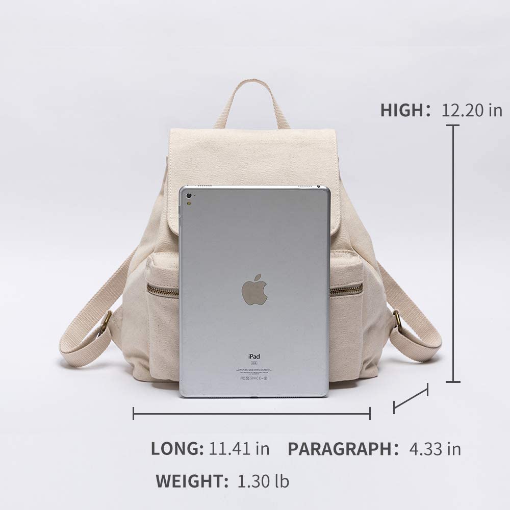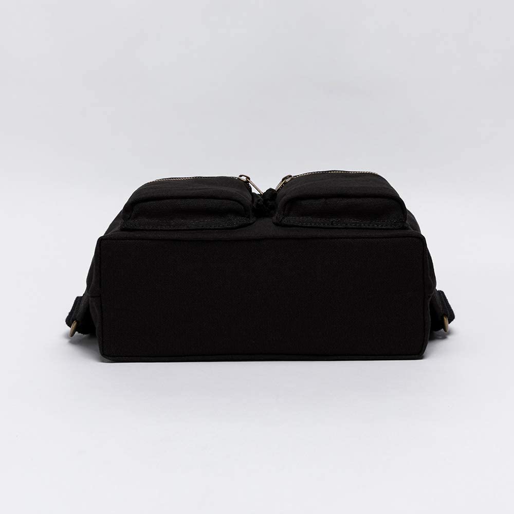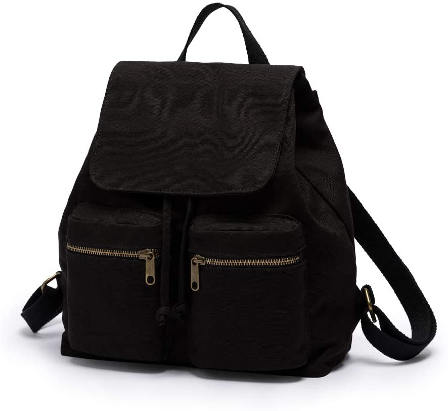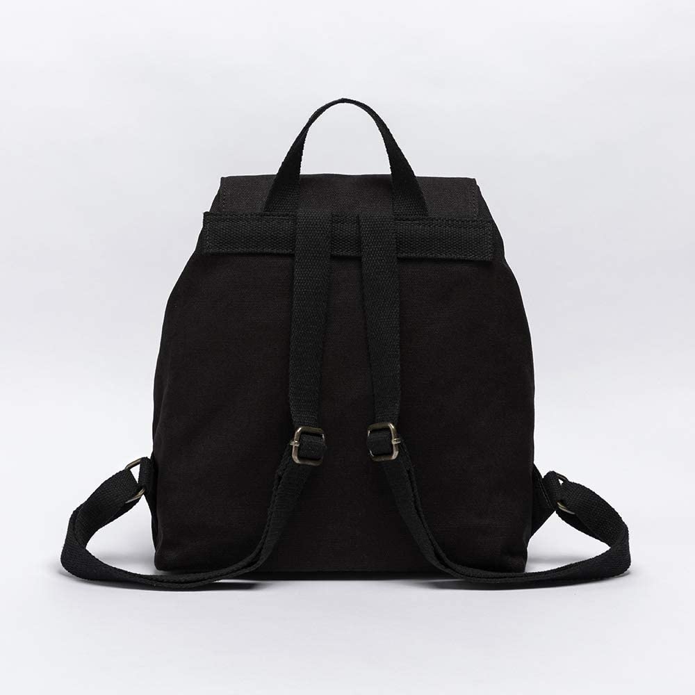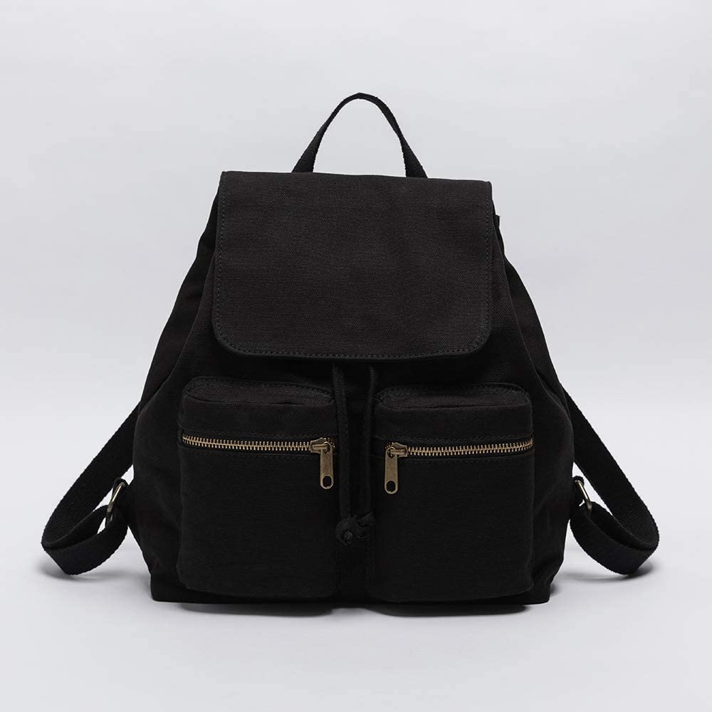 Pure color casual canvas bag backpack Korean style drawstring college backpack (Black)